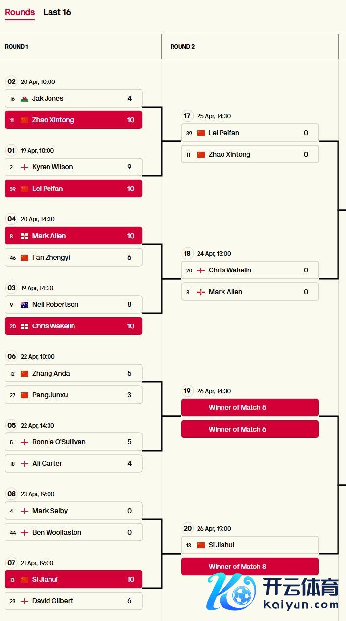 如故晋级的包括、雷佩凡、赵心童、斯佳辉和。张安达与庞俊旭首轮内战未胁制,但也至少确保了其中一东谈主进16强。