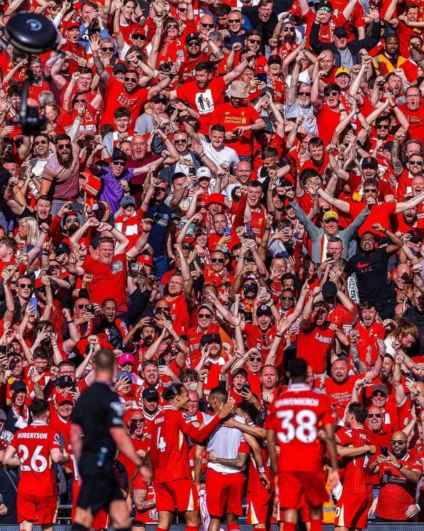 2025年的夺冠样式与那次一龙一猪,阳光明媚的安菲尔德以慷慨东谈主心的表情向他们的英杰们问候。