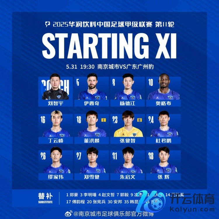 2025华润饮料中甲联赛第11轮,南京城市VS广东广州豹 首发名单出炉,让咱们并肩作战!