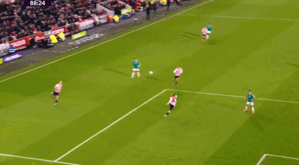 第44分钟,加克波禁区内疑似被绊倒,裁判莫得答理,布伦特福德踢出快速反击,达姆斯高送出直塞,沙德单刀推射立功,2-0!