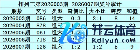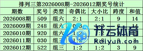 上期总结:陈列三第2026012期开奖号码为522。奖号类型为组三,奇偶比为1:2,大小比为1:2,跨度为3,和值为9。
