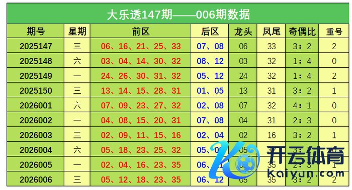大乐透第2026006期出奖号统计:前区05、12、18、23、35,后区06、12。龙头05体育集锦,凤尾35,奇偶比3:2,开出2枚重号。