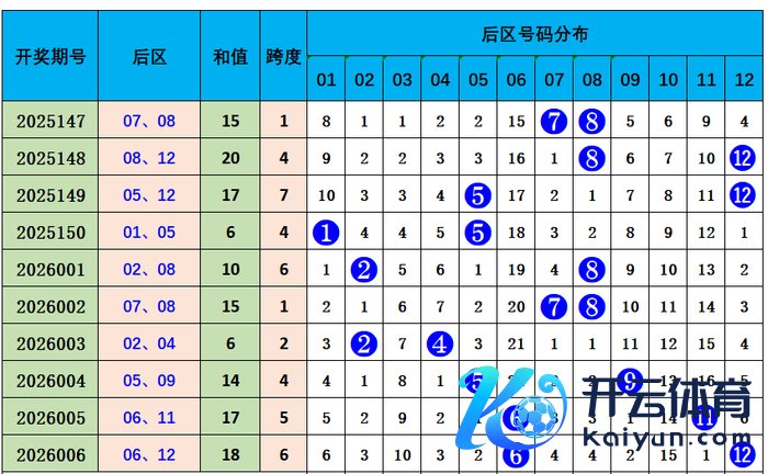上期后区开出奖号06、12,冷热比1:1,近10期冷热比中,0:2出现5次,1:1出现4次,2:0出现1次,总体热码开出较多。空洞分析,本期存眷冷热比0:2。