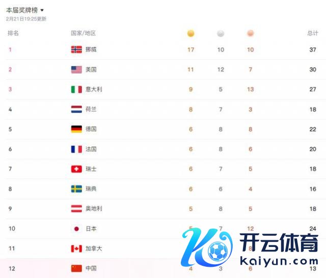最新奖牌榜排行——