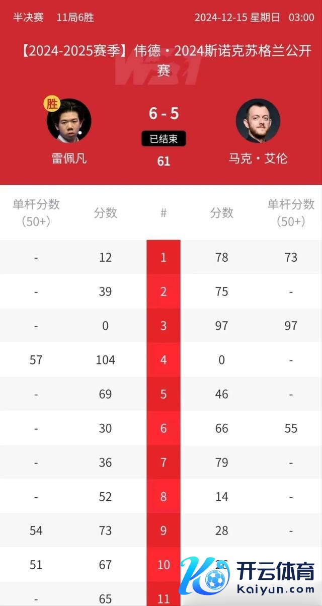 在刚刚终端的终末一场苏格兰半决赛比赛中,中国小将雷佩凡再次献技绝杀大戏,在2-5赛点逾期情况下,连胜四局,最终以6-5驯顺马克艾伦,生计初度打进排行赛决赛体育集锦,会师吴宜泽,两东谈主将与今晚明晨进行终末的冠军争夺!