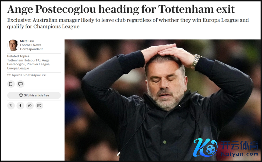 英国媒体《逐日电讯报》名记马特-劳报说念,无论热刺能否夺得欧联杯冠军,球队主帅波斯特科格鲁王人将在赛季末离开俱乐部。