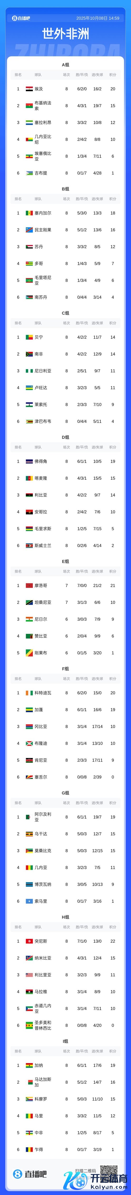 2026好意思加墨天下杯,非洲区一共有9个参加天下杯限额,外加1个参加跨洲附加赛的限额。摩洛哥、突尼斯上个月已提前晋级。凭证出线程序,9个小组第一将径直晋级,收成最佳的4个小组第二晋级下一轮附加赛,决出一席跨洲附加赛限额。
