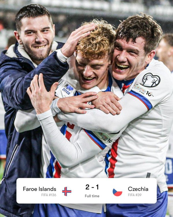两队之间的世界名次收支97位,但终场哨响起时,巨东说念主轰然倒地,狂放庆祝的是法罗群岛的队员。