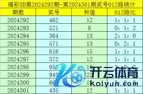 上期归来:福彩3D第2024301期开出奖号:435。奖号为组六模式,与试机号莫得同,奇偶比为2:1,大小比为1:2,012路比为1:1:1,和值为12,跨度为2。