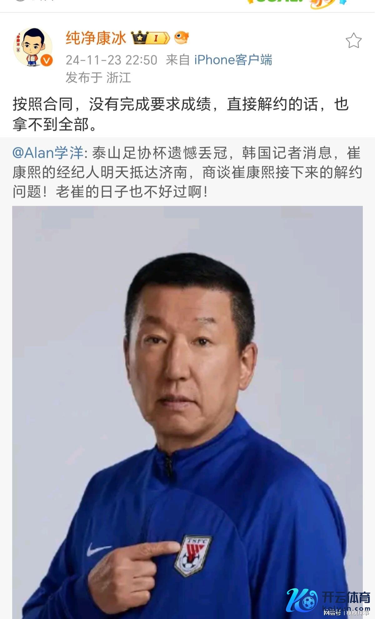 知名足球媒体东说念主徐凯华报说念称:“崔康熙是否续约,还有悬念。今晚泰山队高层统共亮相温州足协杯决赛赛场,不雅看了比赛。”那么不知说念泰山队高层看了这场比赛崔康熙团队的行径,会有何感叹。媒体东说念主徐江示意:“崔康熙牙东说念主翌日来中国,崔康熙倒计时,照旧链接契约?这几天会有后果。”
