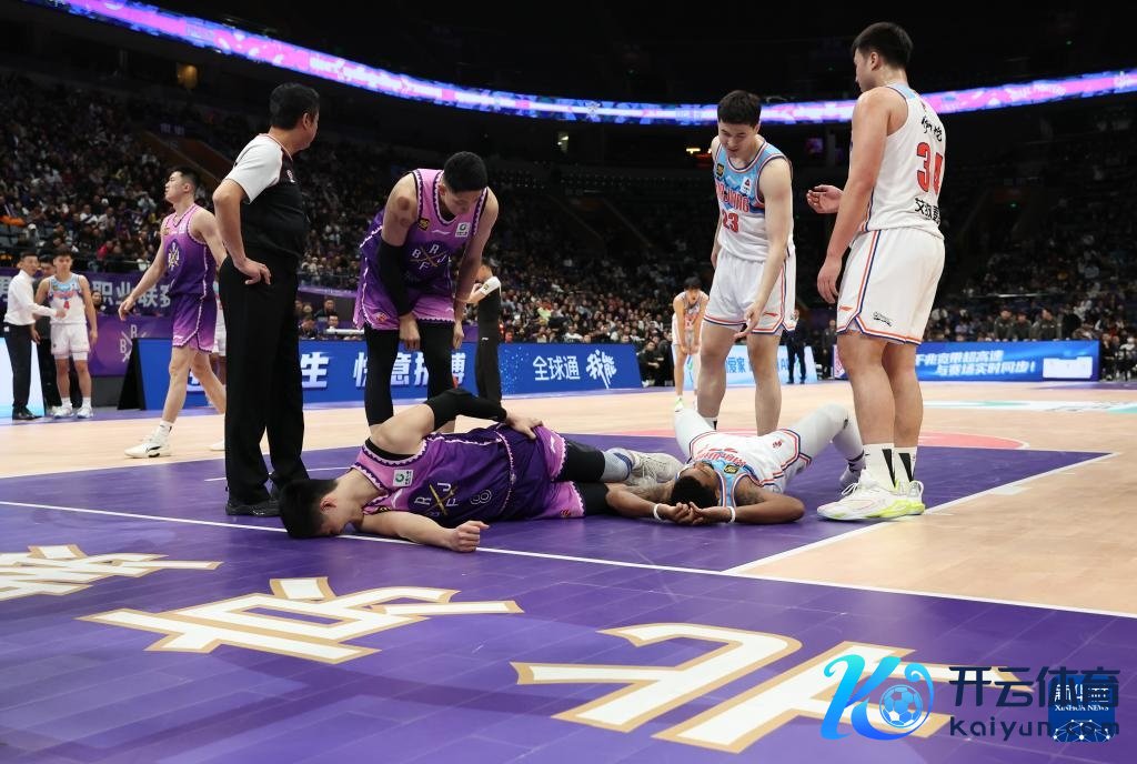 12月15日,北京控股队球员朱松玮在比赛中倒地。新华社记者 王楷焱 摄
