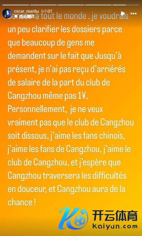 12月21日讯 在中国足协公布的第二批清欠球队名单中,沧州雄狮在列。小奥斯卡发文,谈到了与沧州雄狮的薪资问题。