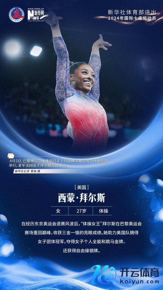 4、西蒙·拜尔斯(好意思国,女,27岁,体操)