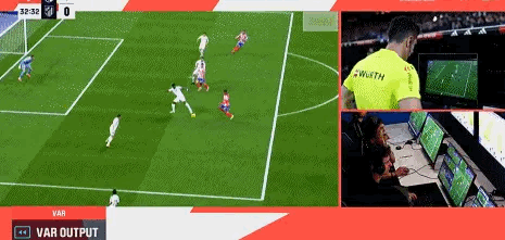 第32分钟,琼阿梅尼禁区内踢倒利诺,主裁判不雅看视频回放后判罚点球,随后阿尔瓦雷斯主罚点球打中路破门,马竞冲破僵局。