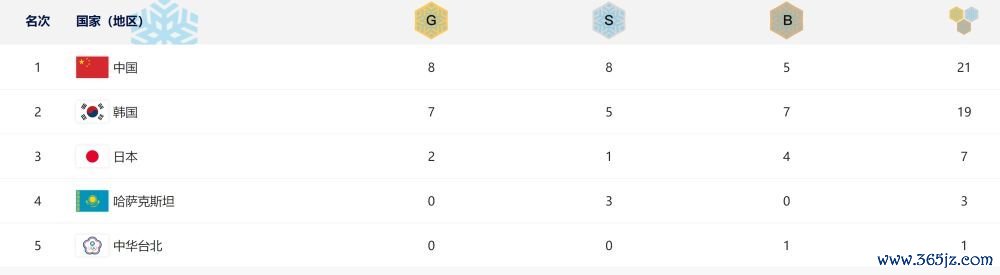 亚冬会首日奖牌榜。