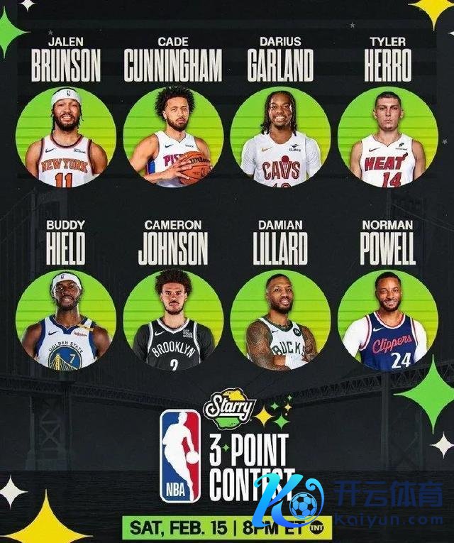 这场三分球比赛参赛的有八个家伙,划分是尼克斯的布伦森、活塞的坎宁安、热火的希罗、骑士的加兰、英豪的希尔德、篮网的卡梅伦·约翰逊、雄鹿的利拉德,还有快船的鲍威尔。