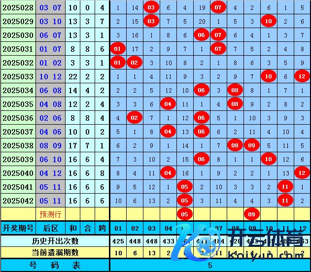 后鉴别析:上期后区开出奖号05和11,为全2路奖号。最近7期后区012路号码个数比为5:3:6,本期后区防御0路号码和2路号码组合,热心两码05、09。