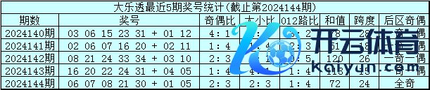 体彩大乐透第24144期奖号为:06 07 08 21 30+01 05,前区奇偶比为2:3,大小比为2:3,012路比为3:1:1体育赛事直播,和值为72,跨度为24,后区为全奇组合。