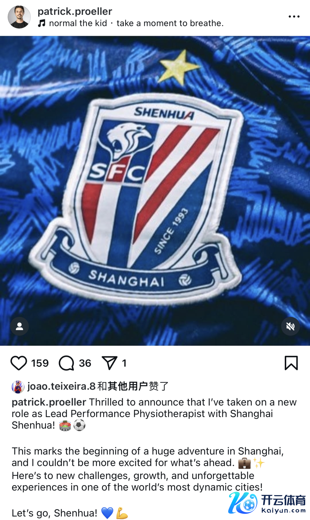 就在今天中午,前瑞士草蜢首席理疗师帕特里克·普罗勒(Patrick Pröller)在社媒上自宣加盟上海申花。