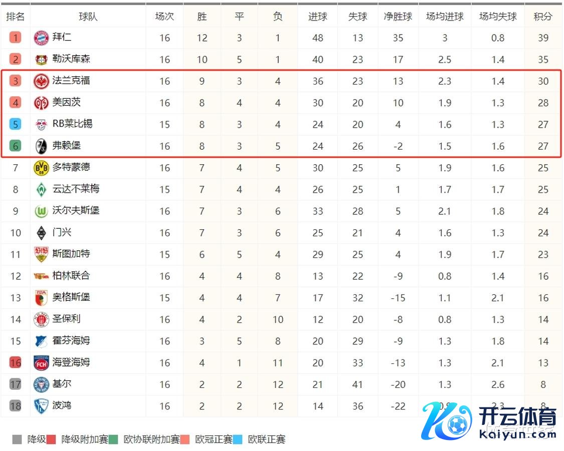 自2024年12月21日德甲第15轮胁制之后,德甲就插足一年一度的冬歇期,而在2025年1月11日,德甲的冬歇期胁制,德甲第16轮的比赛随之拉开战幕,好意思因茨在主场以2:0慑服垫底球队波鸿之后,排行高涨到第四,成为本赛季德甲里最大的黑马;拜仁在客场以点球方式进球,1:0慑服克星门兴格拉德巴赫,全取三分,积39分再次把分差拉到4分,稳居榜首。跟着新一轮的赛事胁制后,当今德甲前二名栽植的分差有点大,而第三名相争吵嘴常热烈,竟有四支球队相争,其中大黑马好意思因茨率带头相逼!