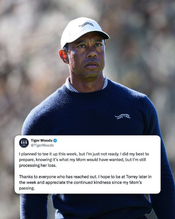 “我策动这一周参赛的,但是我还莫得准备好,”伍兹在酬酢媒体上发帖谈,“我尽了最大极力准备,知谈这是姆妈但愿我作念的事情,但是我仍旧在贬责她的凶事。”