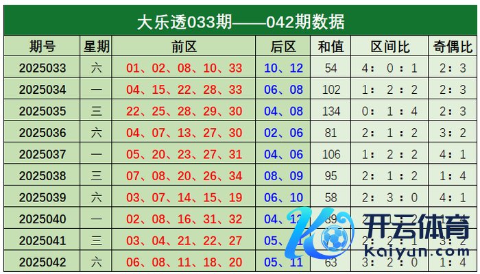大乐透第2025042期出奖号统计:前区06、08、11、18、20体育最新信息,后区05、11。和值为63,区间比为3:2:0,奇偶比为1:4。