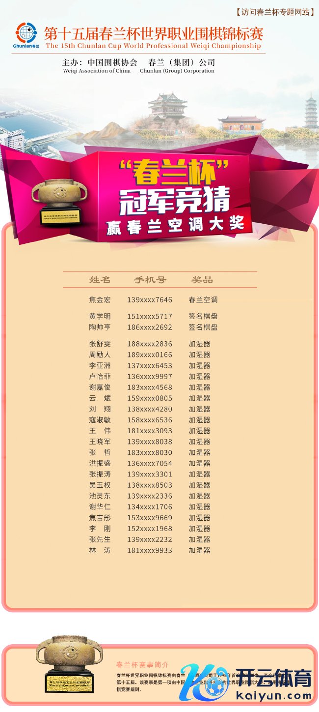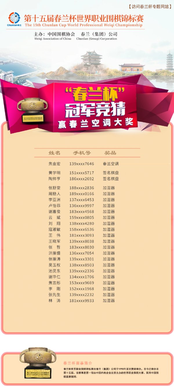 小伙伴们,底下等于揭晓“春兰杯冠军竞猜,赢春兰空调大奖”行径获奖名单的时分了——