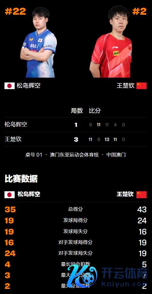 松岛辉空降生于 2007 年,天然才 18 岁但也曾是日本世界锦标赛男单冠军,曾战胜林高远、张本智和等中外妙手,不外此前与王楚钦 3 次交手全部落败,其中国外比赛 1 次对决战至决胜局 2-3 输掉,但乒超联赛 2 次再会齐是 0-3 被横扫,如今再次再会依旧处于破绽。