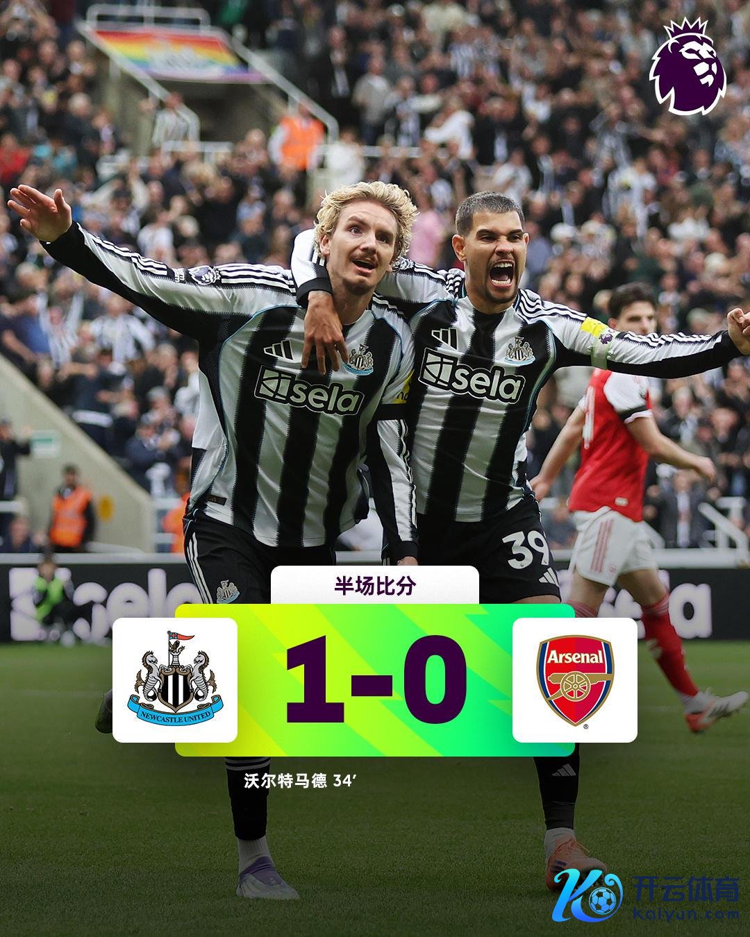 第34分钟,托纳利左路肋部传中,沃尔特马德头球破门,匡助纽卡斯尔联带着1球杰出,回到了更衣室。