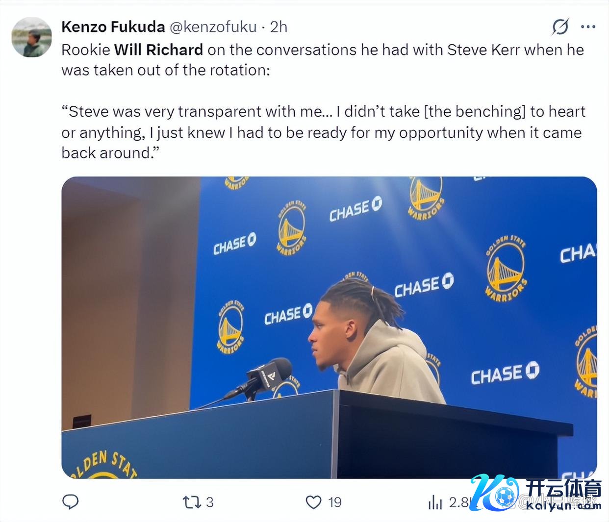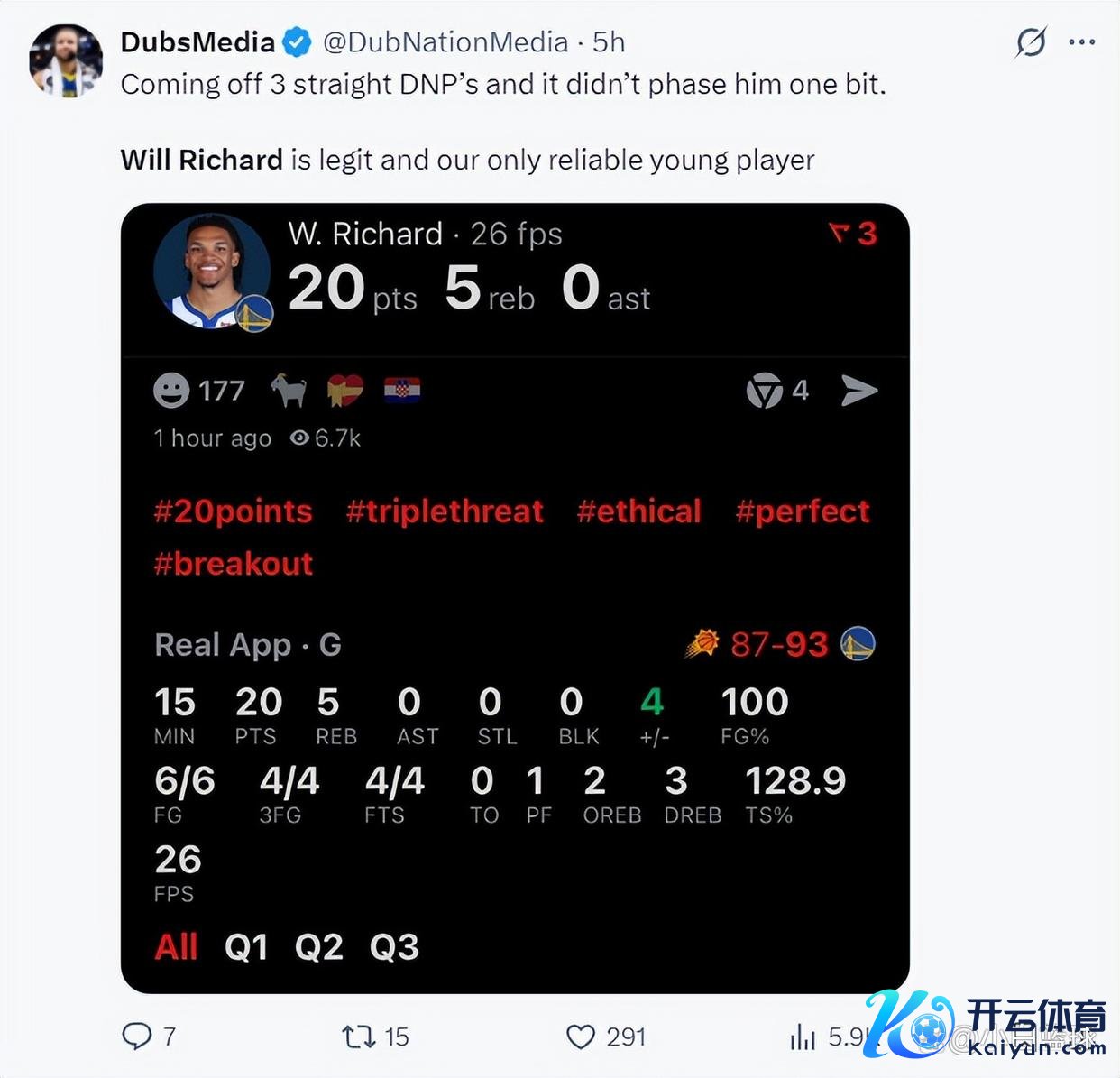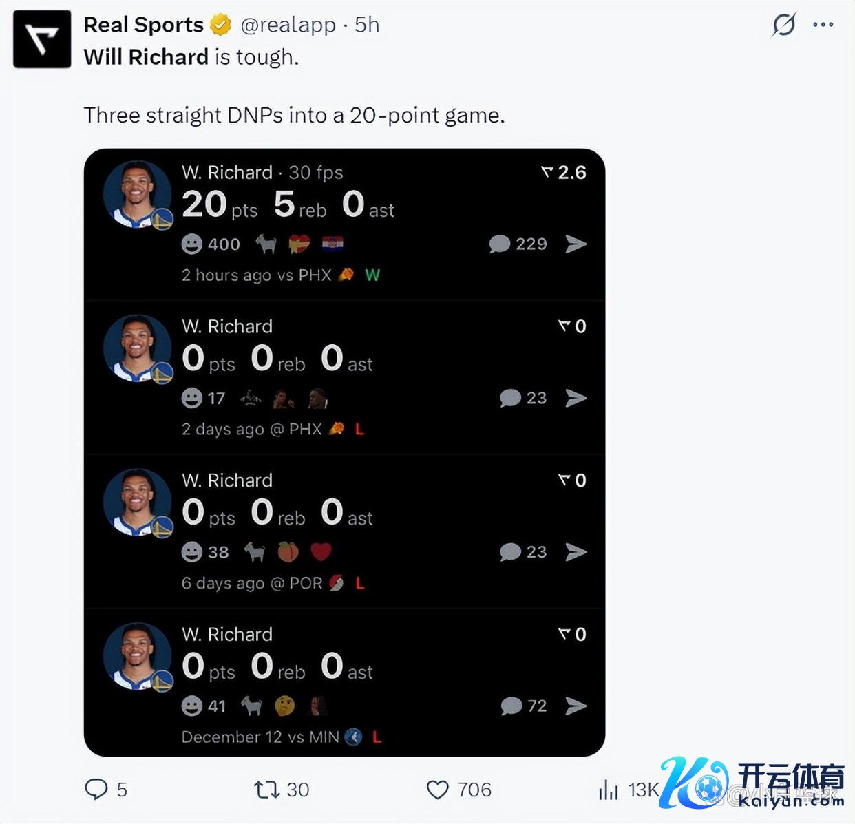 而理查德这位少壮是这么谈到:科尔主教练此前就跟我说过会DNP的事情,但他让我作念好准备,我很信任他,我知谈契机莅临时我需要把合手住,是以我一直王人在喧阗磨真金不怕火,一朝轮到我我就会默契我的作用。