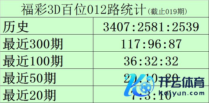 百位推选:百位最近20期号码012路比为7:3:10,当今0路号码遗漏2期,1路号码遗漏1期,2路号码遗漏0期,另外0-9号码遗漏期数分离为: