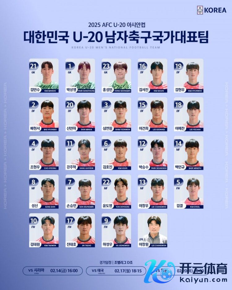 2月14日讯 韩国U20队今六合午将迎来与叙利亚U20队的亚青赛首战,韩国足协官方公布球员号码,听说行将转会布莱顿的尹棹泳身穿22号球衣。