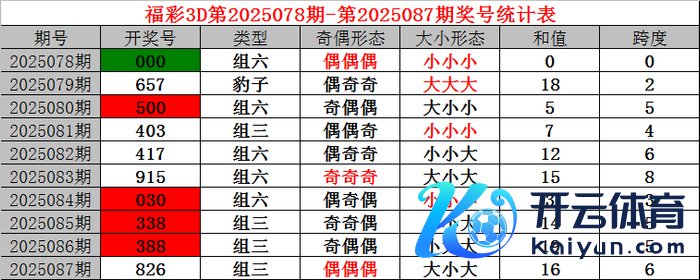 上期回来:福利彩票3D第2025087期开奖恶果826。奖号:偶偶偶、大小大,和值16,跨度6。